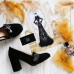 Туфли из черной замши с лаковым ремешком с фурнитурой и обтяжным каблуком Арт. 853-5/48Ок